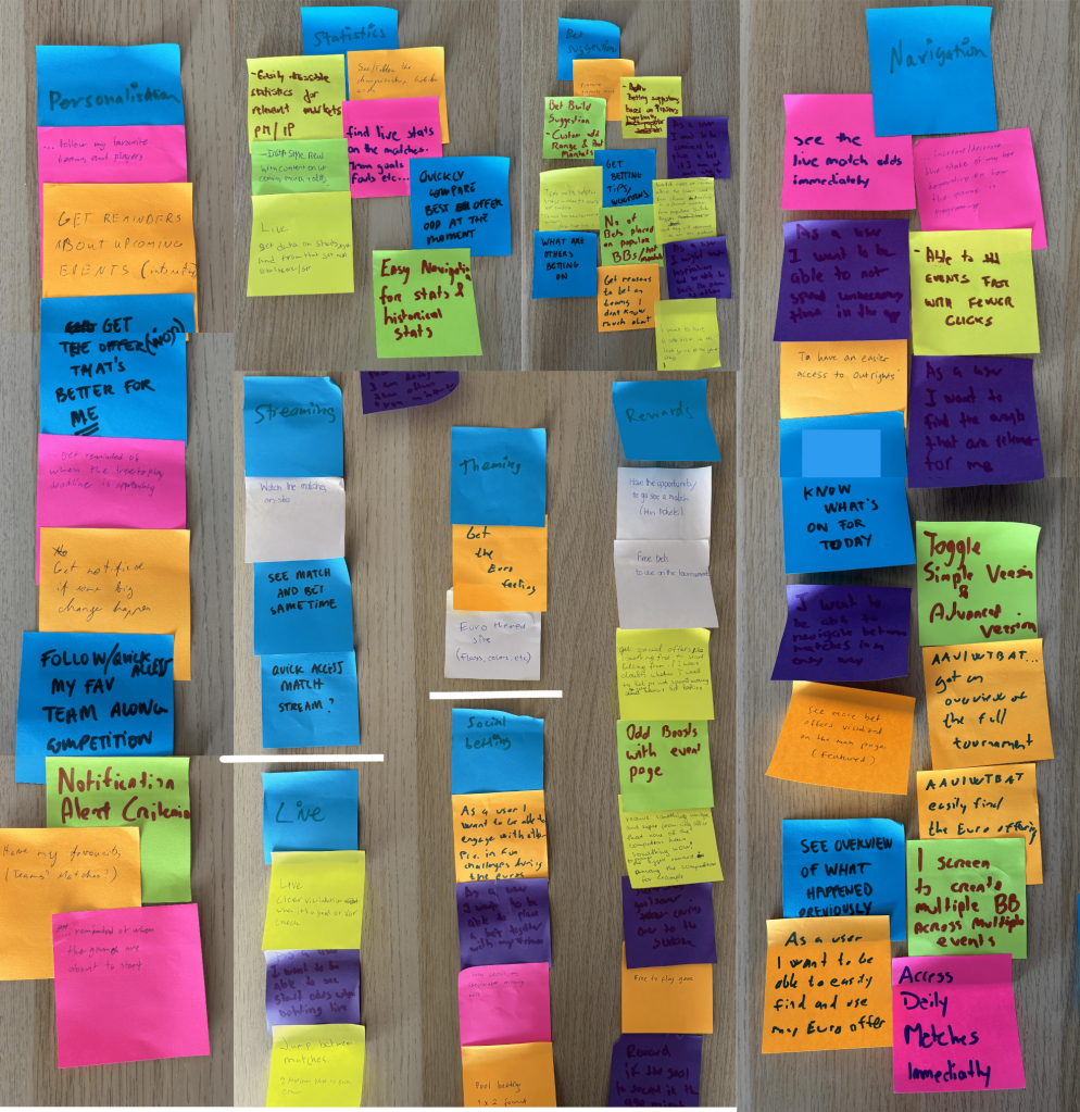 With EURO 2024 on the horizon, we identified a unique opportunity to create a feature that would engage users and enhance their betting experience. To capitalize on this, I led two collaborative workshops that focused on finding the key problems and solutions.